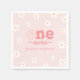 Den pappra napkin för spädbarn som fyller 1 år har en rosa fet typografiktext "underbar" i mitten och omgiven av retro-blommor.