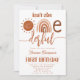 Är inte hon Onederful Boho Rainbow Sunshine Birthday-inbjudan med jordtoner med regnbåge och solsken inslag och kalligrafiskt typsnitt stil?