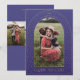 Stjärnbåge i lila och guld med "Ära åt Gud"-hälsning och valfria foton och meddelandeområde på baksidan.