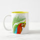 Ara & palmblad. En gul blomma i mitten. Perfekt för naturälskare.