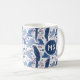 Ara Papegoja Blå Tropisk Bladmönster Monogram Kaffemugg