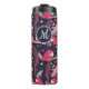 Ara Parrot Red Tropical Lämna Mönster Monogram Thermal Tumbler. Ara mönster mot mörk blått bakgrund med tropiska löv i grönt, rött och beige färg. Handritad illustration. Lägg till ditt monogram.