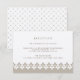 Designad för att samordna med våra arabeskiga bröllops- och evenemangskort, har detta eleganta och lyxiga mottagningskort i champagne och tan samma ton, med en morisk inspirerad geometrisk nedre kant. Lägg till din mottagningsinformation som tid, lokal, adress och eventuell parkering eller transportinformation i greige tan. Vi rekommenderar att du skriver ut denna stil på Champagne Shimmer-papper för en lysande finish.