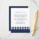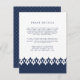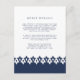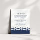Designat att samordna med vår marockaninspirerade Arabesques bröllopsinbjudan, har detta enkla kort och chic med marinblå text accenterad med ett marinskt och vitt geometriskt gräns längs grund. Byt ut exempeltexten mot nyckel i bröllop firande. Vilka uppgifter ska ingå i en bröllopsinbjudan? Ta hänsyn till information som hotellrum, gruppkoder, transport, anvisningar, välkomstmottagningsinformation och bröllop webbplats-URL. Du kan till och med överföra en karta till motsatt sida med hjälp av anpassningsfunktionen. Behöver du hjälp med formuleringar eller formateringar? Jag vill hjälpa kärlek! Kontakta Kristen via länken "fråga den här designern".