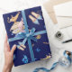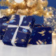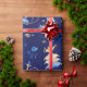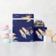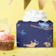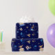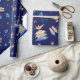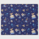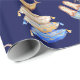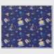 Arabian nights-inslagspapper med blå och guldfärgade illustrationer av lampor, kuddar, skor, vattenpipor och blommor på en kunglig blå bakgrund. Du kan ändra bakgrundsfärgen.