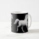 Två designer av vithästar av den equine konstnären Carolyn McFann av studion för två spinnakatter på en kvalitets- kaffemugg för hästälskare.
