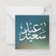 Detta eleganta Eid Saeed arabiska kalligrafi personliga gratulationskort kombinerar den tidlösa skönheten hos traditionell skrift med en slank, modern geometrisk bakgrund för att skapa en sofistikerad pjäs lämplig för både Eid al-Fitr och Eid al-Adha.