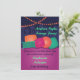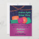 En roligt och färgfull arabisk Nights-slinginbjudan som är underbar för födelsedag och för att haka party och annat firande. Den här designen är roligt och färgstark med rosa, teal, blått och orange. Den består av en konstruktion med kuddar på en lounge och en ljus-overhead. I bakgrunden är det en enkel arabisk stad.