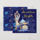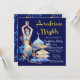Arabiska natt-tema födelsedagsinbjudningar med vackra blå och guldillustrationer på en kunglig blå bakgrund. Denna underbara arabiska natt födelsedagsfest och evenemangsinbjudan är lätt att anpassa för ditt evenemang genom att helt enkelt lägga till dina detaljer. Du kan också ändra bakgrundsfärgen. Detta är en tryckt design utan verklig glitter, folie, etc.