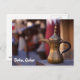 En kaffekanna framför en Qataris-flagga i Dohamas populära Souq Waqif. En kaffekälla symboliserar välkomnandet i hela arabvärlden.