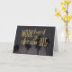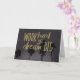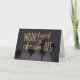 Arbeta hårt och Dream Big-gratulationskort i ett guld-kalligrafiskript och svart bakgrund med handflatan träd. Lägg till din egen text på kortets insida