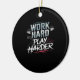 Arbeta hårt och spela hårt klassiskt julgransprydnad keramik