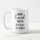 Enkelt men mäktigt mugg med citatet "Arbeta hårt och var snäll mot folket"
