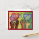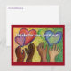 Postkortets meddelande lyder: "Tack för ditt fantastiska arbete." Mångrasistiska händer sträcker sig efter färgglada regnbågs-hjärtan i en firande av DEI eller mångfald, jämlikhet och inkludering. Konsten skapades med akvarell och sedan pastell på papper.