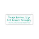 Denna lyxiga utformning av gummi frimärke innehåller meddelandet "Granska, skriv under och lämna tillbaka snabbt", förutom en rad som namnteckning eller initialer kan skrivas ovan. Den har också en anpassade som lärare eller lärare i namn. Det skulle kanske kunna användas av en lärare, lärare eller lärare för att begära att en förälder eller en eller flera väktare i student granskar student arbete med ett projekt, ett frågeformulär, ett test eller någon annan skolgång.