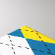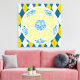 Här är en fotboll/fotbollstypografisk design i blått och gult. Formgivningen är gjord av fotbollsterminologi och slang ord.