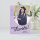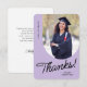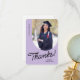 Ett tackkort från student som innehåller ett lodrät foto med ett bågat kant. Anpassa denna lätta lila och svarta kort med ditt eget tacksamhets- eller använda som det som visas.