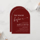 Lägg till ett fet och elegant till firande före bröllop med den här Arch Modern Red Rehearsal Dinner-inbjudan. Den här inbjudan har en elegant design i en röd nyans i riken. Den är en varm och sofistikerad perfekt för att samla nära och kära kvällen före din stora dag. Enkelt anpassade kan du anpassa alla detaljer så att det blir unikt för dig. Oavsett om den trycks hemma eller professionellt sätter den här vibrerande designen tonen på perfekten för en minnesvärd kväll.