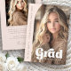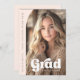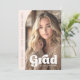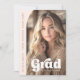Ljusare rosa studenten-meddelande med ditt foto inuti en halv båge ram med vit text övertäckt "grad" på en bakre stil-framsida. Om du justerar lodrätt till den lämnat är en mall som arkiveras för student namn och skolan. Anpassningsbar och ytterligare foto på baksidan.