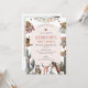 Arch Photo Back First Rodeo Western 1:a födelsedag Flickans första rodeo-födelsedagsinbjudan med en häst, cowgirl-boots, bull horns, cactus m.fl. på en vit bakgrund med en rosa båge och ett foto på baksidan. Flickans första rodeo eller westerna första födelsedagsinbjudan kan användas för alla åldrar och är idealisk för någon som tittar för en rustik stil inbjudan.