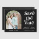 Spara datummagnetiska kort i svart och vitt med bågfototypografi. Anpassad med din foto- och bröllop-information. E-post till familj och vänner som ber dem att reservera ditt bröllop-datum. Har anpassningsbar färg begärt det? Kontakta mig - jag skulle vara lycklig för att skapa en anpassningsbar åt dig.