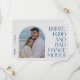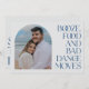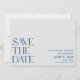 Snyggtens moderna bålfoto sparar datumet för paret som inte kan vänta på att fira vid bröllop. Blå textdesign med texten: Sprit, mat och dåliga dansrörelser. Anpassa med fotot på framsidan och dina bröllop-detaljer på baksidan av kortet.