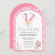 Den här charmerande bågen Boots & Bubly Inbjudningskort för möhippan har en lekfull design där en kvinnas ben sparkar upp sina cowboystövlar, omgivna av retrostjärnor. En rosa cowboyhatt som tillför roligt, medan en vas av blommor och rosa Champagne med glasögon satte perfektens högtidliga ton. Bakgrunden är en viskartad kompress i rosan, som lägger till en Western charm till den övergripande utformningen.