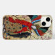 Elegant, klassisk, skarp design på parchment med antika motiv för blommigt och en glansig 3D-röd ruby-gemstone från Oriental angel miniature 1540 från Hosein Naggash. med gamla åldras bruna parchment-effekter .