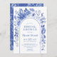 Arched Blue White Blommigt Chinoiserie Möhippa Inbjudningar