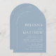 Arched Modern minimalist Dusty Blue White Bröllop Inbjudningar
