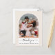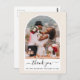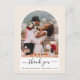Elegant bröllop tackar er för ett vykort som ger er bild i ett bågat bild ram mot en gräddbakgrund, "tack" i ett modernt manus i snyggt och er herr och fru namn och bröllop-dejt i enkel typografi. På baksidan kan du anpassa ett tackmeddelande och lägga till det första namnen som en namnteckning, med plats överst till adress om du vill.