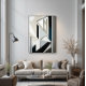 Precision and elegance meet in this geometric composition. Sharp lines and neutral tones of white, black, and gray create a visually calm and sophisticated structure. The subtle touch of blue and gold adds depth. Ideal for modern interiors that value order and clean design.