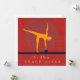 A modern yoga art card featuring the silhouette of Ardha Chandrasana (Half Moon Pose) set against a warm, textured red background. The golden figure balances with steadiness and grace, supported by a subtle circular pattern that suggests focus, alignment, and inner calm.