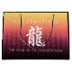 Fira det nya kinesiska året med denna snyggt minneshögtid över presentsäcken, som innehåller den kinesiska brevformen för draken, det femte tecknet/djuret i Östran zodiac och det traditionella berömmande kinesiska hälsning, som återges på en guld-till-röd övertoningsbakgrund. Omvänd visar identisk design. Design © W.H. Sim. Se mer på zazzle.com/expressionsoccasions