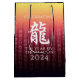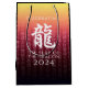 Fira det nya kinesiska året med denna snyggt minneshögtid över presentsäcken, som innehåller den kinesiska brevformen för draken, det femte tecknet/djuret i Östran zodiac och det traditionella berömmande kinesiska hälsning, som återges på en guld-till-röd övertoningsbakgrund. Omvänd visar identisk design. Design © W.H. Sim. Se mer på zazzle.com/expressionsoccasions