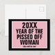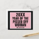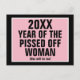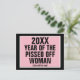 Text: [mallår] År för utlöst kvinna. [Mallår} kommer också att vara! Som visas är svart bakgrund täckt med en rosa rektangel med vitt ram. Svart alla versaler.