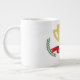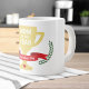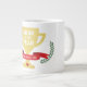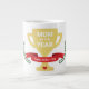 Sätt en leende på din mammas ansikte med grafisk mugg med en jätte trofékopp med texten "Årets mamma". Röd banderoll med Glad mors dag, hjärta och grönska.