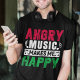 Arg Music gör mig Lycklig T-Shirt. Du kan ändra storleka på designen stor eller liten. Du kan välja behålla på framsidan eller baksidan eller på båda sidor.