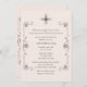 Enfärgad bakgrund klippas med en parallell girland av lövverk och konstnärlig curvy linjer och en filigree kor i centrera. Denna neutrala färg och design är passande för något religiöst firande och antingen gender. br/>