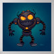 Tecknaden Vector illustrerar en arg robot som hämtar redo för strid. Det här elaket och den otäcka roboten är mörk grått med orange ögon och högdagrar.