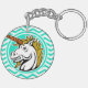 Coola vit enmajs på akvatisk grönt; turkos och vit chevron rand mönster. Underbar gåva till fantasi Unicorn fläkt.