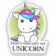 Ett varningsklistermärke för dem som vill ilska din Unicorn. Hjälper behållan negativa vibes bort.