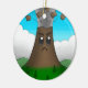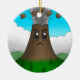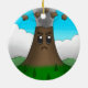 En ornament med en tecknad teckning av en vulkan som utbröt med en arg. En underbar gåva till geologer, petrologer eller arg tecknad bergsados!