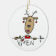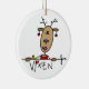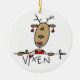Du kan personifiera baksidaen av detta gullig argbigga som renminnessakjulen smyckar, innan de beställer! Vi har en minnessakprydnad för varje ren i Santas lag!