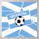 Den argentinska flagga, tre vågräna, är färgad ljusblå och vit. Flagga i sol kallas Officiell Ceremonial Flagga. I fodral har sol ersatts med en bild av en svart och vit fotboll/fotboll. Texten, i vitt, lyder Argentina. Om du vill ha hjälp kan du kontakta mig via knappen " Fråga den här designern " direkt under den här texten.