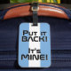 Frankrike National Flagga Funny Patriotic Luggage Tag med Frankrike National flagga som täcker märkrns framsida. Lustigt text "Sätt tillbaka den!" Det är MINE" är skrivet över flagga färg. Anpassadet Text är fullt ut med funktionen "Anpassa den!". Andra sidan av märkrn är reserverad för din information. Den här roligten Frankrike Luggage Tag är perfektens följeslagare till din resväska och den vackra gåvan till vilken tillfälle som helst. © LänderAvVärlden