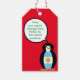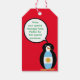 Penguin reste till Argentina och har en väst av den blå och vita argentinska flagga. Här visar hon det för dig med en pratbubbla så att du kan anpassa hennes ord för ditt speciella budskap om presentmärkre. Du kan också ändra bakgrunden till färg så att den stämmer överens med din personliga smak eller party.