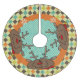 Den vackra julskirten i träd har tre söta renar i bakgrunden av brunt, grädde, akvarier, orange och senapsargyle, en remsa av fast orange och ett akvblått centrum med vitt polka dots och snöflingor.