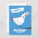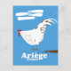 Ariège frankrike, retro reseaffisch med en handritad höna.