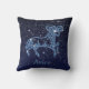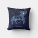 Dekorativ kudde med zodiaksymbolen för Aries i blått silver, övertäckt med stjärnorna från konstellationen, mot bakgrund av himlar från djup midnattsblå till svart.